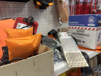 - Markierungsfarben, Ablänghilfen, Bandmaße und weiteres Vermessungszubehör